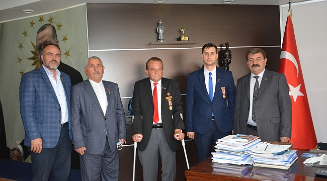 Ziyaret kapsamında, Türkiye Harp Malulü Gaziler Şehit, Dul ve Yetimleri Derneği Afyonkarahisar Şube Başkanı Emre Öztürk Belediye Başkanı Nihat Sarı’ya günün anısına Kuran-ı Kerim ve şanlı Türk Bayrağımızı takdim etti.