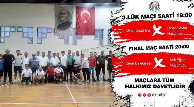 Dinar Belediye Başkanımız Nihat Sarı’nın sosyal belediyecilik çalışmaları kapsamında bu yıl 2.sini düzenlediğimiz Kurumlar Arası Voleybol Turnuvası bugün oynanacak olan maçlar ile sona eriyor.