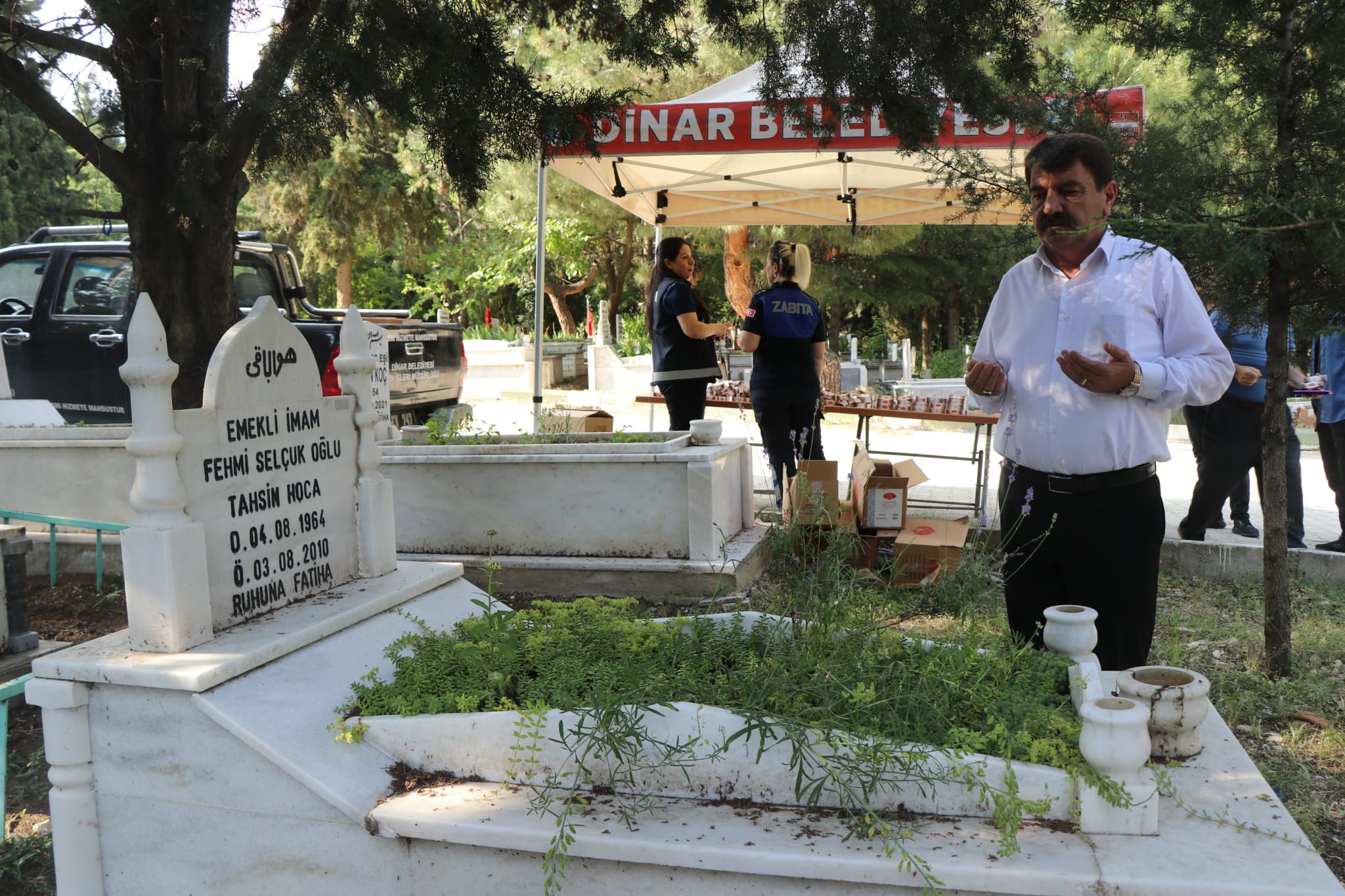 Dinar Belediye Başkanımız Nihat Sarı, Kurban Bayramı arefesinde ilçemiz Asri Mezarlığına kabir ziyaretine gelen vatandaşlarımız ile bayramlaştı.