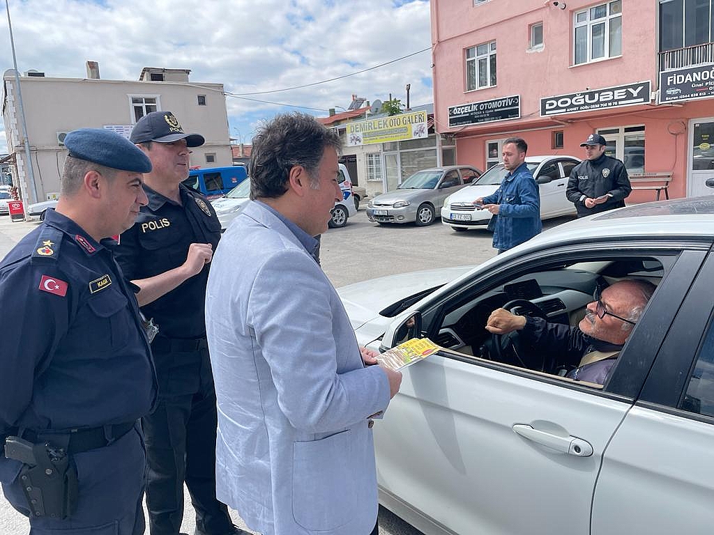 Kaymakamımız Selami Kapankaya 7-13 Mayıs Karayolu Trafik Haftası dolayısıyla; Yayalar için 5 Adımda Güvenli Trafik kampanyasının tanıtımı, bayram dönüşü trafik kazalarını önlemek için vatandaşlarımızı bilinçlendirmek, emniyet kemeri kullanımı konusunda toplumsal farkındalığın artırılması ve diğer kontrolleri sağlamak amacıyla Polis ve Jandarma ekiplerince yapılan yol uygulamasına katıldı.Uygulamada hazır bulunan İlçe Jandarma Komutanı Binbaşı Necip Kacar ve İlçe Emniyet Müdür Nihat Pulat’tan bilgi alan Kaymakamımız, durdurulan araçların sürücülerine ve yolculara ‘Yayalar için 5 Adımda Güvenli Trafik’ kampanyası hakkında bilgi vererek; emniyet kemerinin önemi, hız sınırları ve diğer trafik kurallarına uymaları konularında tavsiyelerde bulundu ve bilgilendirme broşürlerini takdim ederek iyi yolculuklar diledi.Dinar Gündem Gazetesi